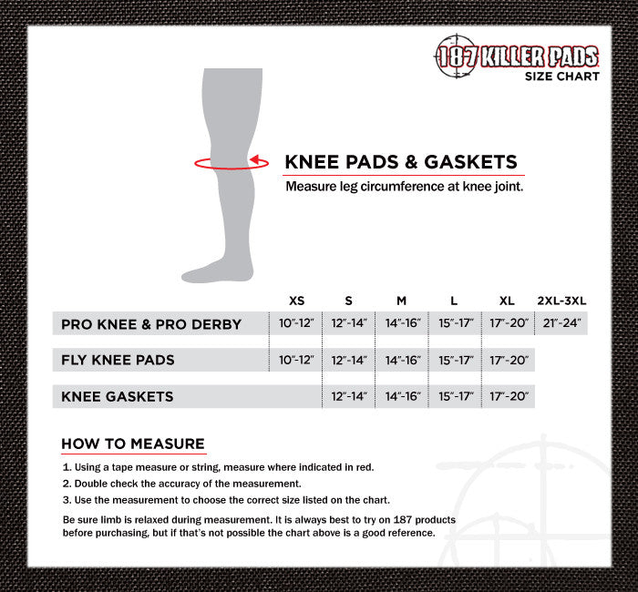 Sizing guide is pictured, based on circumference at the knee. Obviously quad and calf sizes vary for everyone, so trying on is the truest path to the proper fit.